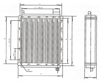 SRL型散热器在顺气流方向分二排管与三排管排列,其型号举例如下: SRL-5×5/2——顺气流方向二排管交叉排列。 SRL-5×5/3——顺气流方向三排管交叉排列。